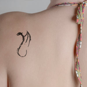 Move into the world of fantasy and strength with our 'Dragon Wings Filled' temporary tattoo. This powerful design is perfect for adventure seekers, festival visits, adventurous travel or just to spice up your everyday life. With our innovative Jagua tattoo technology, this tattoo will stay on your skin for up to two weeks, gently melting into it. Choose your favorite spot to unleash the mystique and power of these fake tattoos from minink!