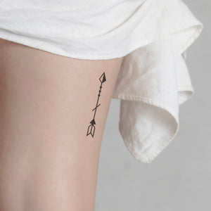 Point your direction with the 'Thin Arrow' temporary tattoo. Elegant and understated, this design is a symbol of progress and purpose. Whether you're about to embark on a new adventure or want to express your personal style, our Jagua tattoo allows you to adorn yourself like a real tattoo for up to two weeks. The innovative technology ensures that the tattoo is gently absorbed into the skin and can be applied and removed painlessly. Ideal for those who want to go their own way and do it in style.