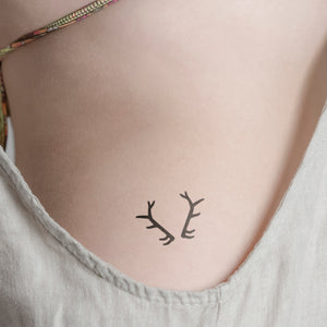 Demonstrate your inner strength and elegance with our "Big Antlers" temporary tattoo. This simple but impressive design embodies power and grace in perfect harmony. Thanks to our advanced Jagua Fruit technology, the tattoo retains its splendor for up to two weeks. Perfect for festival visits, road trips or simply to emphasize your individual style with unique body jewelry, show your wild side with minink.