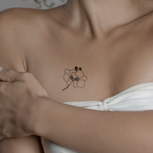 Immerse yourself in the world of floral splendor with our temporary tattoo "Orchid with stem". This delicate design symbolizes grace and exoticism and is perfect for special occasions or everyday wear. Our advanced Jagua Fruit technology ensures that this tattoo remains visible for up to two weeks and gently penetrates the skin. Choose the perfect spot to accentuate your natural beauty with this unique body jewelry. Show your love for nature and adventure with minink.