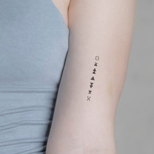 Bring music into your life with our "Play Skip Pause" tattoo. This design symbolizes the rhythm of life and the joy of music. Thanks to our innovative Jagua fruit technology, this tattoo will remain visible on your chosen area of skin for up to two weeks. Wear it on your upper arm, shoulder or wherever you like and let the rhythm accompany you.