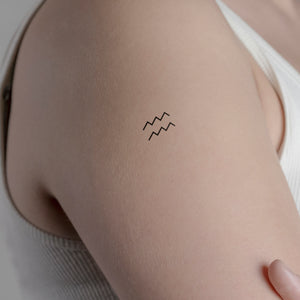Show your individuality with our "Aquarius zodiac sign" tattoo. As an air sign, you radiate creativity, which is now expressed up close for everyone to see with this design. It lasts up to two weeks thanks to Jagua fruit technology and fits perfectly on your upper arm or behind the ear, for example. Be proud of your star sign and wear it whenever you like!