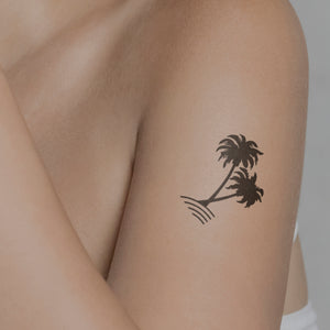 Our "Two Palm Trees" temporary tattoo lets you enjoy sunny days in double happiness. Ideal for the free shoulder, your wrist or any other area of skin, this design with Jagua fruit technology lasts up to two weeks and gives you the freedom to wear beautiful body jewelry without the permanent decision of a real tattoo. Try it out and feel the vacation feeling on your skin!