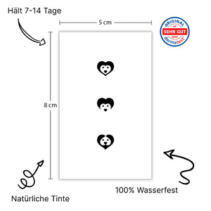 Réduit à l'essentiel : Ces cœurs de tatouage temporaires convainquent par leurs formes non conventionnelles et leur effet puissant. Un point fort pour l'arc costal ou l'omoplate.
