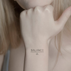Trouvez votre équilibre avec notre tatouage temporaire "Balance sur balance". Ce dessin géométrique est plus qu'un simple accessoire - c'est un symbole d'harmonie et d'équilibre. Il dure jusqu'à deux semaines grâce à la technologie des fruits Jagua et est surtout d'une beauté à couper le souffle sur des endroits comme l'avant-bras ou le haut du dos.