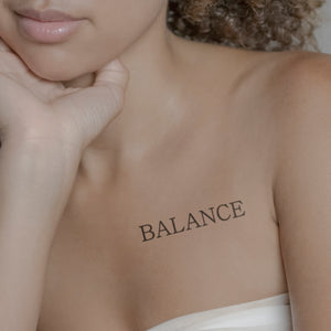 Trouvez votre centre avec notre tatouage "Balance". Ce design élégant symbolise l'harmonie et la stabilité, idéal pour les femmes qui souhaitent retrouver l'équilibre dans leur vie. Grâce à la technologie des fruits Jagua, il est visible jusqu'à deux semaines sur ta peau et peut donc être appliqué très facilement, par exemple sur l'intérieur du bras ou sur la cheville. Un compagnon quotidien qui t'aide à rester équilibré en toute situation.