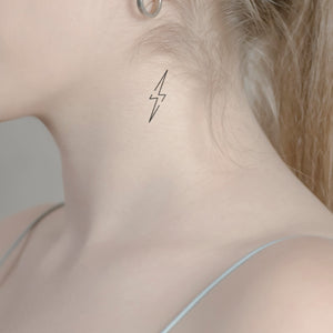 "Notre tatouage éclair capture l'énergie d'un moment électrisant. C'est l'accessoire parfait pour les concerts ou les nuits en ville ! Ce tatouage temporaire, inspiré par la force et l'énergie d'un éclair, est parfait pour tous ceux qui aiment se faire remarquer. Il reste visible jusqu'à deux semaines et disparaît ensuite sans laisser de traces - tout cela grâce à la technologie magique du fruit Jagua. Combine-le avec d'autres designs ou porte-le seul pour une expression forte et indépendante.