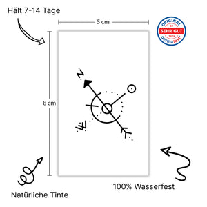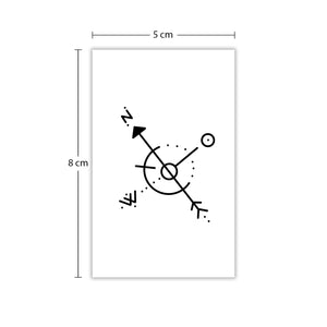 Ce design combine différents éléments sur plusieurs axes de lignes pour former une boussole. Il ressemble à un diagramme cosmique - un tatouage minink pour tous ceux qui veulent porter symboliquement une boussole de leur vie sur leur peau.