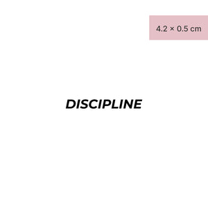 Offre à ton corps une expression forte avec notre tatouage "DISCIPLINE". Inspiré par la force et la détermination, ce design est parfait pour l'aventurière courageuse qui sommeille en toi. Porte fièrement ce tatouage temporaire créé par minink sur ton bras lors du prochain festival ou montre-le sur ta cheville lors de ton prochain voyage. Fabriqué avec la technologie innovante du fruit Jagua, ta déclaration durera jusqu'à deux semaines, soulignant ainsi ta force et ta détermination.