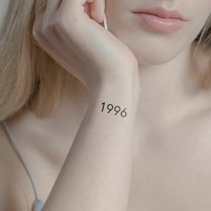 Célèbre ton année de naissance 1996 avec un tatouage aussi unique que toi. Nos tatouages temporaires utilisent la technologie des fruits Jagua pour te donner une individualité stylée pendant deux semaines. Parfait pour ta peau impeccable et sans engagement à long terme. Plonge dans le monde des tatouages avec cette alternative de tatouage, sans aucune douleur.