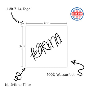 Inspiré par une véritable calligraphie, KARMA est une déclaration claire sur ta peau.