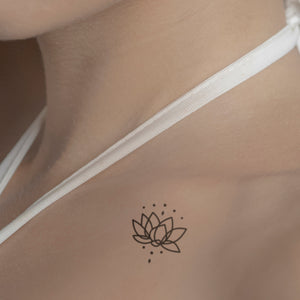 Réveille la déesse intérieure en toi et maintenant aussi sur toi - avec le tatouage temporaire "Fleur de lotus" de minink. Inspiré par la beauté et la pureté de la fleur de lotus, ce design est parfait pour toutes les femmes aventurières. Que ce soit lors d'un festival, d'un voyage exotique ou pour donner une touche spirituelle à ton quotidien, ce tatouage, réalisé grâce à la technologie de tatouage innovante à base d'encre Jagua, dure jusqu'à deux semaines et te fait rayonner. Plonge dans le monde de minink et laisse ta peau raconter des histoires.