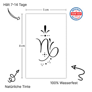 Ton signe astrologique est le Capricorne et tu veux le mettre sur ta peau ? Alors tu peux maintenant le réaliser directement avec ce magnifique tatouage de signe astrologique "Capricorne en écriture calligraphique".