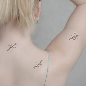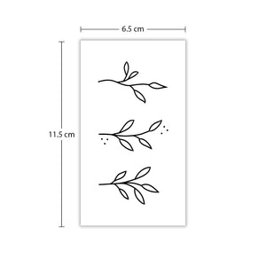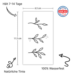 Trois branches stylisées avec des bourgeons. Ce tatouage minink célèbre le développement, le renouveau et l'attachement à la nature - temporairement portable, léger et symbolique.
