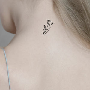 La tulipe est le signe du printemps et des nouveaux départs. Porte toi aussi notre tulipe au design filigrane comme tatouage temporaire et fleuris où que tu sois. Grâce à la technologie douce des fruits Jagua, il apparaît naturellement sur la première couche de ta peau et dure jusqu'à deux semaines. Assure-toi dès maintenant ton nouveau tatouage préféré sans douleur.