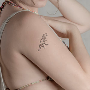 Entrate nel mondo dei dinosauri con il nostro finto tatuaggio futuristico 'Geometric Dinosaur'. Questo affascinante disegno combina la potenza della preistoria con l'estetica moderna ispirata al mondo preistorico ed è perfetto per le visite ai festival, per i viaggi e, naturalmente, per il vostro look quotidiano. Realizzato con l'innovativa tecnologia della frutta Jagua, il vostro tatuaggio rimarrà sulla pelle fino a due settimane in modo accattivante e delicato. Mostrate il vostro amore per la natura e i gioielli per il corpo con stile!