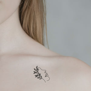 Indossate la natura sulla vostra pelle con il nostro disegno avanguardistico "volto fatto di foglie". Questo tatuaggio temporaneo è un omaggio alla bellezza della natura e al fatto che siamo sempre parte di essa. La tecnologia di alta qualità della frutta Jagua rende quest'opera d'arte un'attrazione temporanea ma di grande effetto, che si annida delicatamente nel primo strato di pelle del corpo per un massimo di due settimane. Perfetto per chi ama i gioielli per il corpo e cerca qualcosa di speciale per ogni occasione.