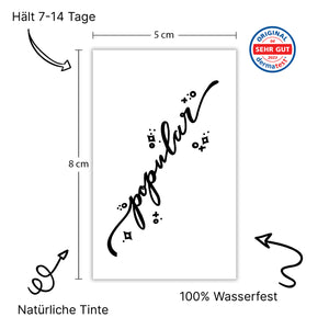 I nostri tatuaggi creano arte sulla vostra pelle in sole 12-36 ore. Avete bisogno di aiuto? Guardate il nostro video di istruzioni.