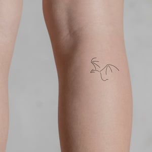 Aggiungete un tocco di mistero al vostro aspetto con il nostro tatuaggio temporaneo "Minimalist dragon". Nonostante il suo design semplice, questo disegno irradia una potenza impressionante. Grazie all'innovativa tecnologia Jagua, il tatuaggio rimane visibile fino a due settimane, indipendentemente dal fatto che lo indossiate sul braccio o in un altro punto a vostra scelta. Sentite il potere magico di questa alternativa di tatuaggio di minink.