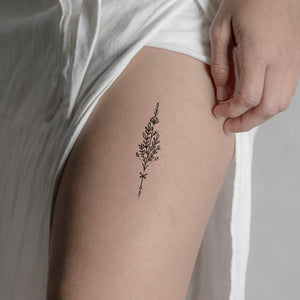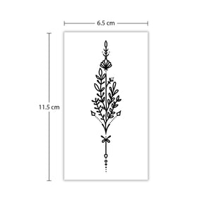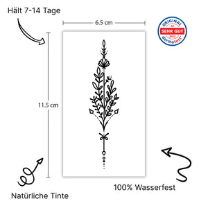 Un motivo floreale, ricco di dettagli con foglie e rami - direzione e tranquillità combinate in un unico motivo. Un potente tatuaggio temporaneo di minink con un significato che è perfetto come tatuaggio per i piedi.