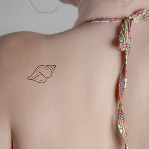 Scoprite la magia del mare con il tatuaggio temporaneo "Shell with dots" di minink. Ispirato alla bellezza della natura, questo disegno è perfetto per tutte le donne avventurose che vogliono esprimere il loro amore per l'oceano. Indossatelo al polso per un tocco di stile da spiaggia o sulla caviglia per un look sottile ma accattivante. Realizzato con l'innovativa tecnologia Jagua fruit, il tatuaggio durerà fino a due settimane, perfetto per la prossima visita al festival o per le vacanze al mare.
