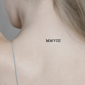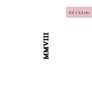 Celebrate un momento speciale con il nostro tatuaggio "Roman numeral MMVIII". Un'attrazione senza tempo che proietta un ricordo significativo del 2008 direttamente sulla vostra pelle. Catturate questo momento con la nostra tecnologia Jagua fruit per un massimo di due settimane senza temere un tatuaggio permanente. Perfetto per gli anniversari o come regalo simbolico per i vostri cari.