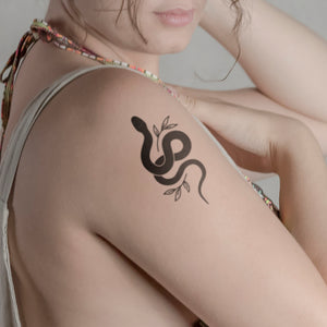 Risvegliate il vostro lato selvaggio con il nostro tatuaggio temporaneo "Serpente con rami". Questo disegno combina la bellezza misteriosa di un serpente con l'eleganza naturale dei ramoscelli, rendendolo perfetto per le visite ai festival o per i viaggi esotici. Grazie all'innovativa tecnologia Jagua fruit, questo tatuaggio dura fino a due settimane ed è facile da applicare. Sia che lo mettiate sul braccio, sulla gamba o sulla schiena, sarà sicuramente un'attrazione per gli occhi. Provatelo e lasciate che la vostra pelle diventi la vostra tela!