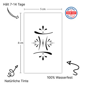 I nostri tatuaggi creano arte sulla vostra pelle in sole 12-36 ore. Avete bisogno di aiuto? Guardate il nostro video di istruzioni.