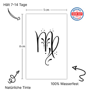 Il vostro segno zodiacale è Vergine e volete tatuarlo sulla vostra pelle? Allora potete farlo subito con questo bellissimo tatuaggio del segno zodiacale "Virgo in calligraphic script".