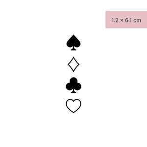 Fate una dichiarazione con le carte da gioco per tatuaggi temporanei di minink. Questo design unico, ispirato ai classici colori del gioco delle carte, è il compagno perfetto per il vostro prossimo festival o avventura. Realizzato con l'innovativa tecnologia Jagua fruit, offre fino a due settimane di vibranti gioielli per il corpo. Mostrate il vostro lato selvaggio e vivete il gioco!