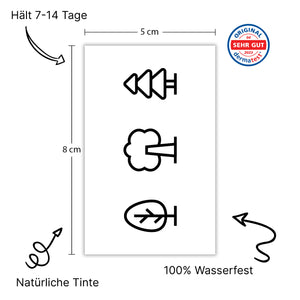 I nostri tatuaggi creano arte sulla vostra pelle in sole 12-36 ore. Avete bisogno di aiuto? Guardate il nostro video di istruzioni.