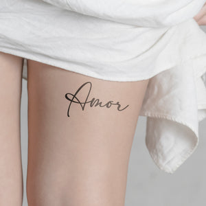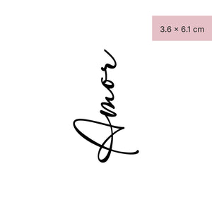 "Entfalte Zuneigung auf deiner Haut mit unserem temporären Tattoo "AMOUR". Jede feine Linie dieses zarten Schriftdesigns zelebriert Liebe und Anmut. Es ist das perfekte Schmuckstück für romantische Treffen oder entspannte Abende. Platziere es auf deinem Handgelenk oder hinter dem Ohr für einen subtilen Charme. Und keine Sorge wegen der Haltbarkeit – unsere Jagua-Frucht-Technologie sorgt dafür, dass dein kleines Zeichen der Liebe bis zu zwei Wochen bestehen bleibt. Einfach und unkompliziert.