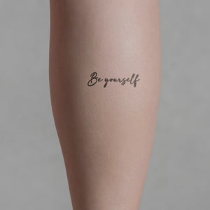 Unser "Be yourself künstlerisch" Schriftzug ermutigt dich, authentisch und einfach DU sein zu dürfen. Mit seinem klaren Statement ist es ein Symbol für Selbstausdruck und Individualität und dank der innovativen Jagua-Frucht-Technologie bis zu zwei Wochen lang auf deiner Haut verweilt und mit der ersten Hautschicht natürlich erneuert wird. Es ist perfekt für Festivalbesuche, Reisen oder einfach nur, um deinen individuellen Stil zu zeigen. Ob du es auf deinem Arm, Bein oder Rücken platzierst, es wird sicherlich Aufmerksamkeit erregen und Komplimente einbringen.