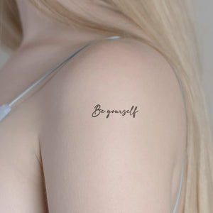 Sei du selbst mit unserem "Be yourself" - Tattoo. Es ermutigt dich, authentisch zu sein und deine Individualität zu feiern. Dank der Jagua-Frucht-Technologie bleibt dieses Tattoo bis zu zwei Wochen intakt. Trage es mit Stolz und erinnere dich daran, dass du einzigartig und wunderschön bist, genau so, wie du bist.