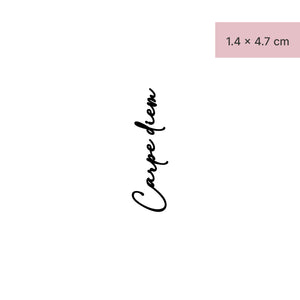 "Carpe diem" – Nutze den Tag mit unserem inspirierenden temporären Tattoo. Die feinen Linien und die elegante Schriftart machen es zu einem subtilen, aber aussagekräftigen Statement, das dich unterstützt durch die Jagua-Frucht-Technologie bis zu zwei Wochen auf all deinen Wegen begleitet. Setze ein Statement, egal ob am Handgelenk, dem Unterarm oder der Innenseite des Handgelenks und zeige deine Liebe zum Leben mit diesem einzigartigen Körperschmuck!