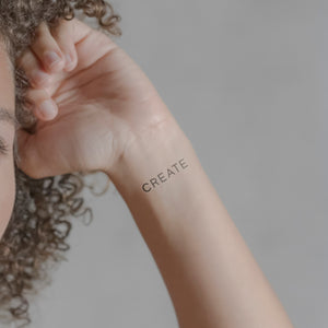 Mit dem temporären Tattoo "CREATE" von minink setzt du ein klares Statement für deine kreative Seite! Dieses kreative Schriftdesign, hergestellt mit innovativer Jagua-Frucht Technologie, hält bis zu zwei Wochen und begleitet dich auf all deinen Abenteuern. Perfekt für Festivalbesuche, Reisen oder einfach nur, um deinem Alltag mehr Abwechslung zu geben. Zeige deinen Freunden deine kreative Seite und tragen den Schriftzug "CREATE Bold" mit Stolz und Selbstbewusstsein.