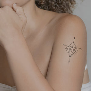 Getreu der schieren Unvergänglichkeit von Diamanten verleiht dir unser temporäres Tattoo "Diamantbohrer" einen unvergleichlichen Look. Das Design dieses Fake-Tattoos symbolisiert dabei Stärke und Unzerbrechlichkeit und ist ideal für Frauen, die ihre innere Kraft zeigen möchten. Mit der Jagua-Frucht-Technologie bleibt das Tattoo bis zu zwei Wochen auf deiner Haut und eignet sich perfekt für Schulter oder Unterarm.