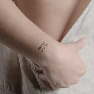 Drücke deine Leidenschaft und Dramatik aus mit unserem temporären Tattoo "DRAMA QUEEN". Dieses auffällige Schriftdesign wird alle Blicke auf sich ziehen. Dank der innovativen Jagua-Frucht-Technologie bleibt das Tattoo bis zu zwei Wochen strahlend schön auf deiner Haut. Setze ein Statement und trage es mit Stolz, um garantiert alle Blicke auf dich zu ziehen!