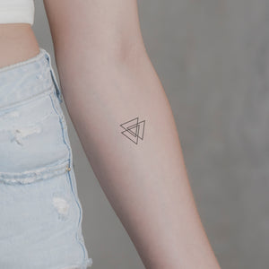 Setze ein geometrisches Statement mit unserem "Drei Dreiecke" - Tattoo. Dieses minimalistische Design steht für Balance und Kreativität. Egal, ob für den Alltag oder besondere Anlässe, dieses Tattoo hält mittels moderner Jagua-Tattoo-Technologie bis zu zwei Wochen und fügt sich nahtlos in die erste Schicht deiner Haut ein. Tipp: Probiere das Tattoo an verschiedenen Stellen wie dem Handgelenk, dem Oberarm oder dem Knöchel aus, um deinen lässigen Looks zu kreieren.
