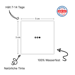 Unsere Tattoos zaubern dir in nur 12-36 Stunden Kunst auf die Haut. Brauchst du Unterstützung? Schau dir unser Anleitungsvideo an.