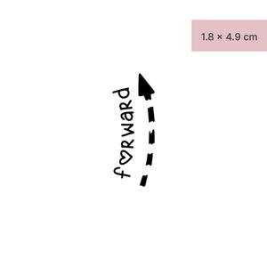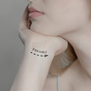 Gehe immer vorwärts mit unserem "Forward" Tattoo. Dieses Design erinnert dich daran, dass du deine Ziele verfolgen darfst. Durch die innovative Jagua-Frucht-Technologie bleibt dieses Tattoo bis zu zwei Wochen lang sichtbar. Trage es an deinem Arm, Bein oder an einer beliebigen Stelle deiner Wahl und halte deine Aufmerksamkeit auf das, was vor dir liegt.