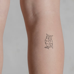 Verleihe deinem Look Eleganz mit unserem temporären Tattoo "Geometrische Eule". Dieses Design ist ein Blickfang bei jeder Gelegenheit. Dank der innovativen Tattoo-Technologie auf Basis der Jagua-Tinte bleibt es bis zu zwei Wochen auf der Haut. Ob du es am Arm, Bein oder an anderen Stellen trägst, du wirst begeistert sein!