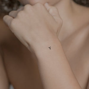 Setze ein Statement mit unserem "Grossbuchstabe Y" - Tattoo. Das Y steht dabei sinngemäss für die Fragen und Wege deines Lebens. Trage es stolz auf deinem Nacken, dem Handgelenk oder dem Knöchel und lass es mit unserer sicheren Jagua-Frucht-Technologie bis zu zwei Wochen lang Teil deiner ganz persönlichen Geschichte sein.
