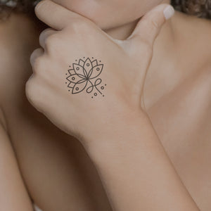 Der "Grosse Lotus" steht für Erneuerung und Schönheit. Dieses zauberhaft zarte temporäre Tattoo passt sich mit der natürlichen Erneuerung deiner Haut an und bietet dir dank der innovativen Tattoo-Technologie auf Basis der Jagua-Tinte bis zu zwei Wochen lang einen eindrucksvollen Blickfang. Trage es auf der Schulter oder dem Rücken und zeige deine innere Stärke und Anmut. Tauchen ein in die Welt des Körperschmucks mit minink und gönne dir dieses wunderschöne Style-Piece.