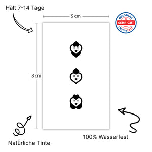 Unsere Tattoos zaubern dir in nur 12-36 Stunden Kunst auf die Haut. Brauchst du Unterstützung? Schau dir unser Anleitungsvideo an.