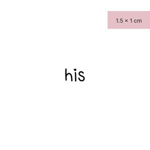 Du bist auf der Suche nach einem ganz persönlichen Statement? Dann ist unser filigranes "his"-Tattoo genau das Richtige für dich! Dieses temporäre Tattoo ist in einem eleganten Schwarz gehalten und in einer geschwungenen Schriftart geschrieben. So wirkt es besonders feminin und ist dank der innovativen Jagua-Frucht-Technologie sogar bis zu zwei Wochen auf deiner Haut sichtbar. Es lässt sich schmerzfrei, einfach und unkompliziert auftragen und auch wieder entfernen.