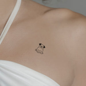 Für alle Hundeliebhaberinnen: Unser "Hund" - Tattoo ist nun auch ein treuer Begleiter, den du direkt auf deiner Haut mit dir führen kannst. Dieses realistisch wirkende Tattoo-Design zeigt stilistisch schön einen vierbeinigen Freund. Mit der Jagua-Frucht-Technologie hält dieses temporäre Tattoo bis zu zwei Wochen und sieht toll einfach an jeder Stelle, ob auf dem Rücken oder auch dem Unterarm, einfach nur bezaubernd aus. Ein süsses Symbol für die Verbundenheit mit deinem pelzigen Freund. Zeige damit deine Liebe für Hunde und Kunst auf eine ganz neue, trendige Art und Weise.