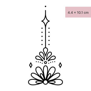 Entdecke die spirituelle Seite in dir mit unserem "Mandala mit Lotusblumen"-Tattoo. Dieses kunstvolle Design, das Ruhe und Erneuerung symbolisiert, hält bis zu zwei Wochen dank der innovativen Tattoo-Technologie auf Basis der Jagua-Tinte. Ideal für den Rücken oder die Hüfte ist es ein wunderschöner Ausdruck innerer Harmonie und Balance. Dieses temporäre Tattoo ist einfach Must-have für alle Meditations- und Yoga-Enthusiastinnen.