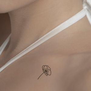 Setze ein lebhaftes Statement mit unserem temporären Tattoo im Mohn - Design. Das feine Design dieses Fake-Tattoos spiegelt die wilde Schönheit der Mohnblume wider. Mit unserer Jagua-Frucht-Technologie bleibt das Tattoo bis zu zwei Wochen auf deiner Haut erhalten und verblasst dann ganz natürlich. Ideal für einen sommerlichen Flair oder um dein Outfit aufzupeppen. Kombiniere es mit anderen floralen Designs für deinen einzigartigen Körperschmuck.