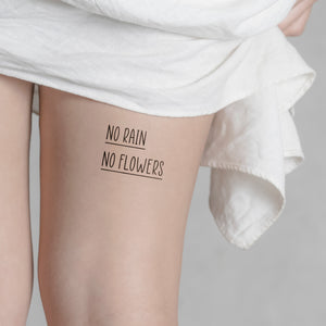 Tauche ein in die Welt der Blumen mit dem temporären Tattoo "NO RAIN NO FLOWERS 2" von minink. Dieses Design zeigt, dass selbst nach Regen immer schöne Blumen blühen können. Mit der Jagua-Frucht-Technologie bleibt dieses Kunstwerk bis zu zwei Wochen auf deiner Haut erhalten. Trage es stolz, um deine Blumenliebe zu zeigen.